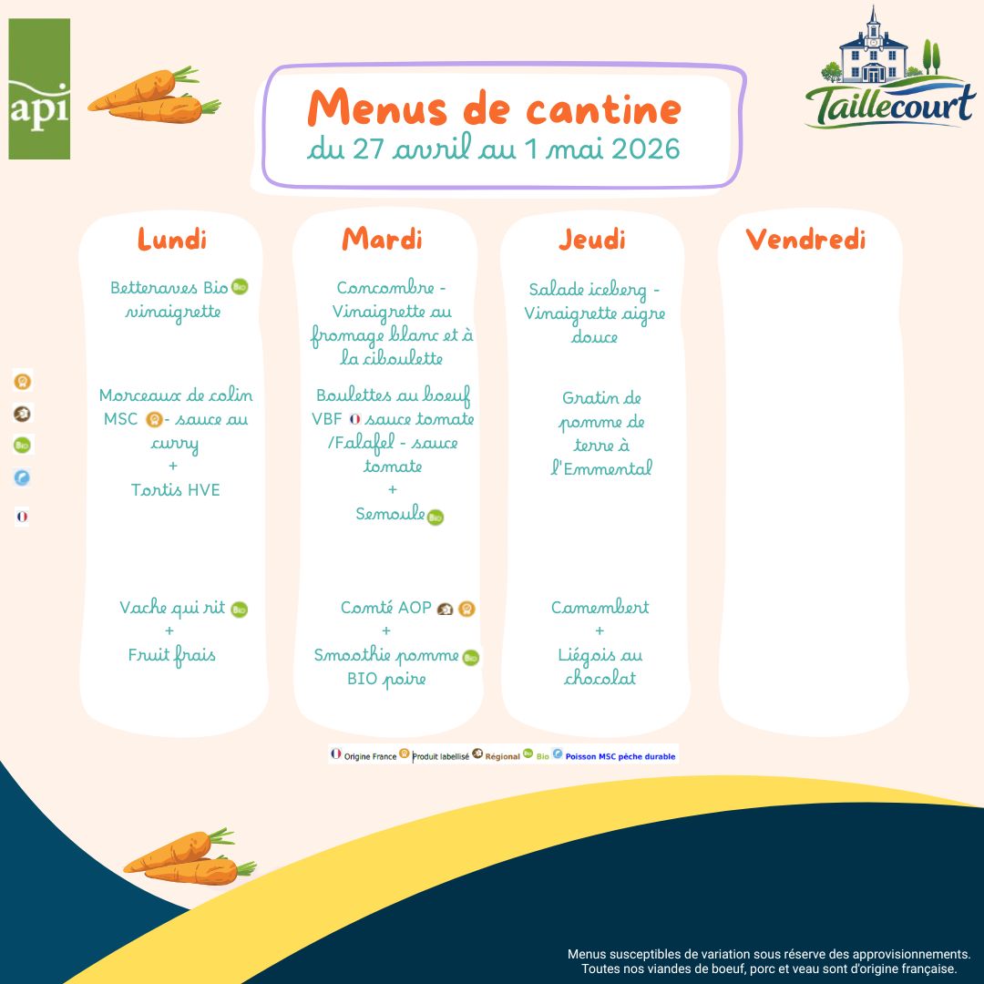 Retrouvez les menus de la restauration scolaire et les coordonnées du périscolaire