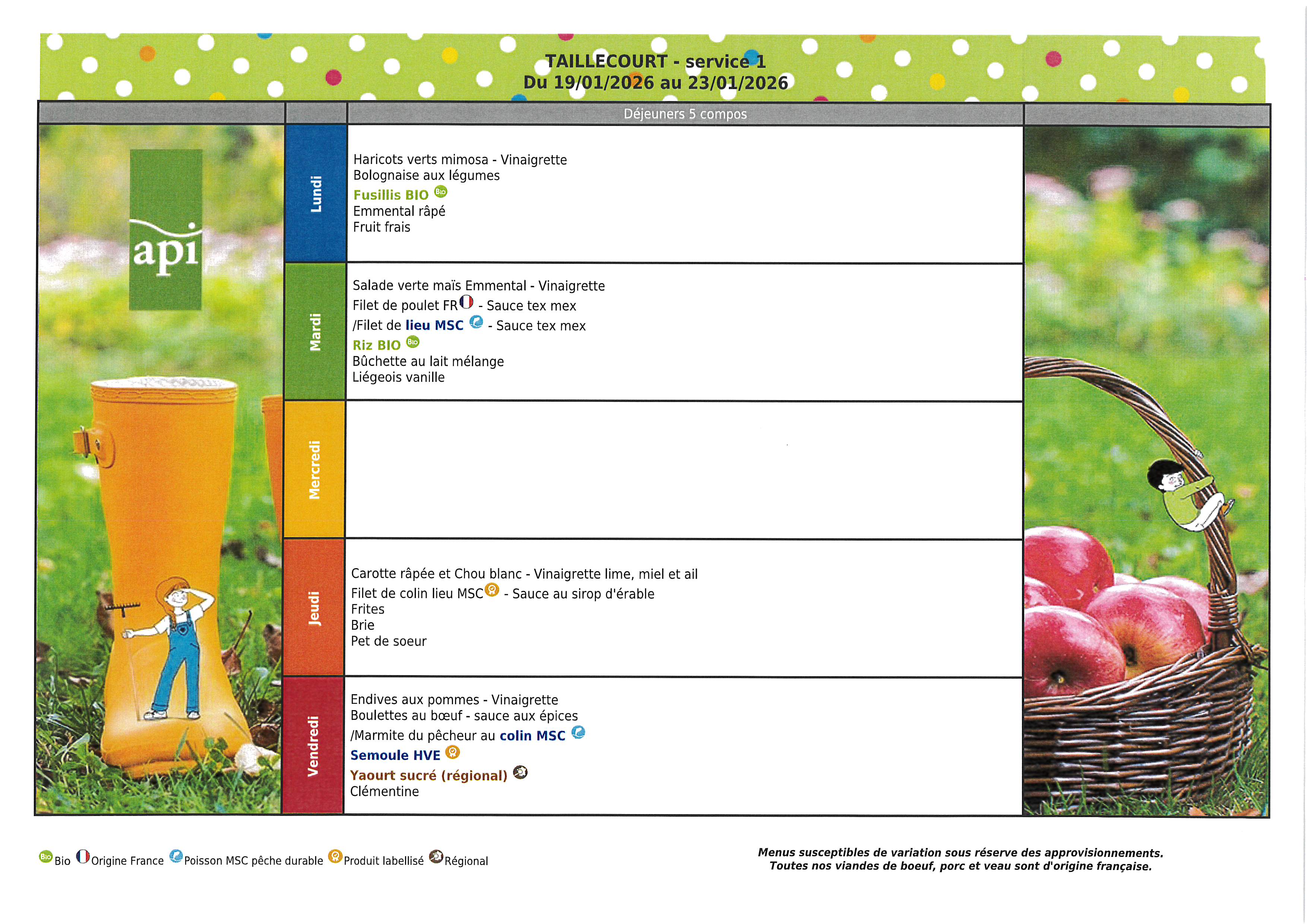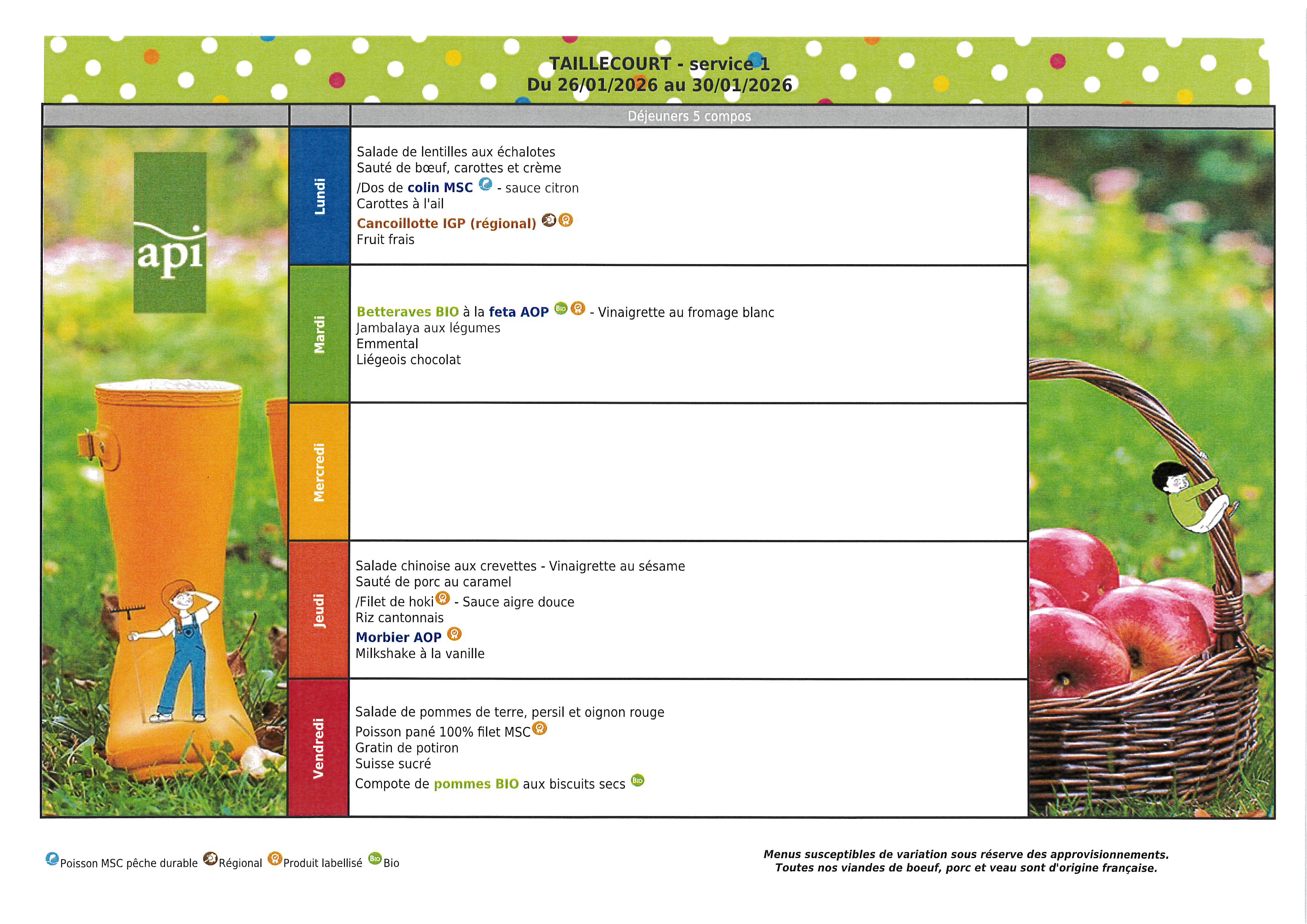 MENU RESTAURATION SCOLAIRE